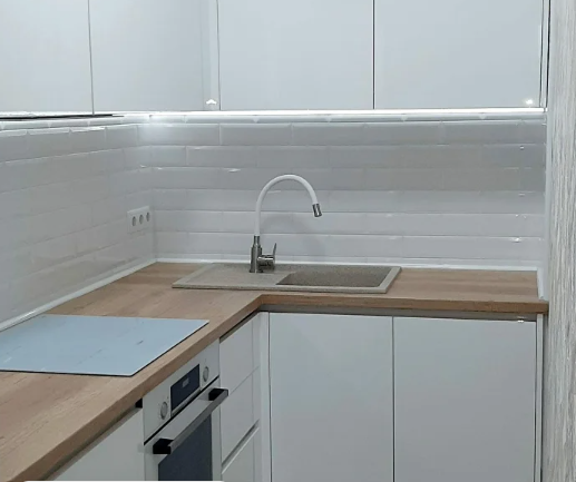 Угловая конфигурация позволяет максимально использовать пространство, особенно в небольших квартирах. За счёт размещения рабочих зон вдоль двух стен создаётся свободный центр, где удобно перемещаться и размещать обеденный стол. Кроме того, такой дизайн облегчает интеграцию бытовой техники, делает визуальное восприятие более гармоничным и открывает возможности для установки острова или барной стойки.